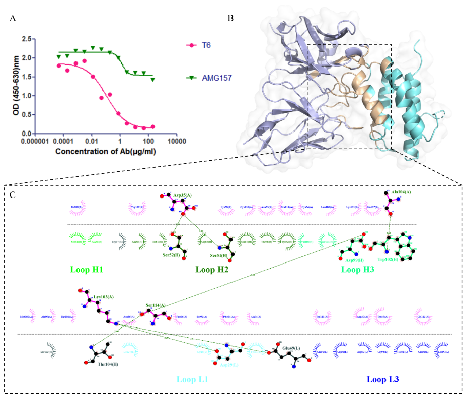 來源于上皮細(xì)胞的細(xì)胞因子胸腺基質(zhì)淋巴生成素(thymic stromal lymphopoietin,TSLP)參與哮喘炎癥通路的啟動(dòng)。帶正電荷的TSLP與胸腺基質(zhì)淋巴生成素受體(TSLPR)形成二元復(fù)合物,隨后與白細(xì)胞介素-7受體α鏈(IL-7Rα)結(jié)合形成三元復(fù)合物,該復(fù)合物在共表達(dá)TSLPR和IL-7Rα的細(xì)胞中通過STAT5通路激活信號(hào)轉(zhuǎn)導(dǎo),導(dǎo)致炎性細(xì)胞因子的釋放。因此,靶向TSLP及其信號(hào)通路的抗體藥物被認(rèn)為是治療哮喘的有效策略。